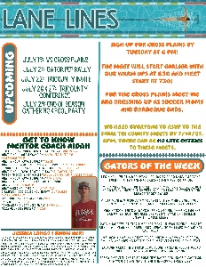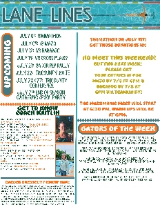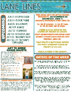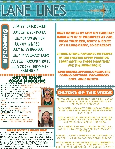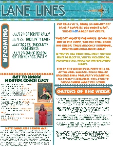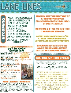 Hope you are enjoying your holiday weekend, your coaching staff is working hard to continue on the regularly scheduled program, so here are your entries and your newsletter for this week! Entries this week took us a bit more time than usual. We've been racing so well, we put some extra time into our events and strategies in hopes of a Gator W. Let's get those Cudas! Warm ups start at 6:05, please be prompt; meet begins at 630. The 8Under Free Relays will happen before the IMs, due to...