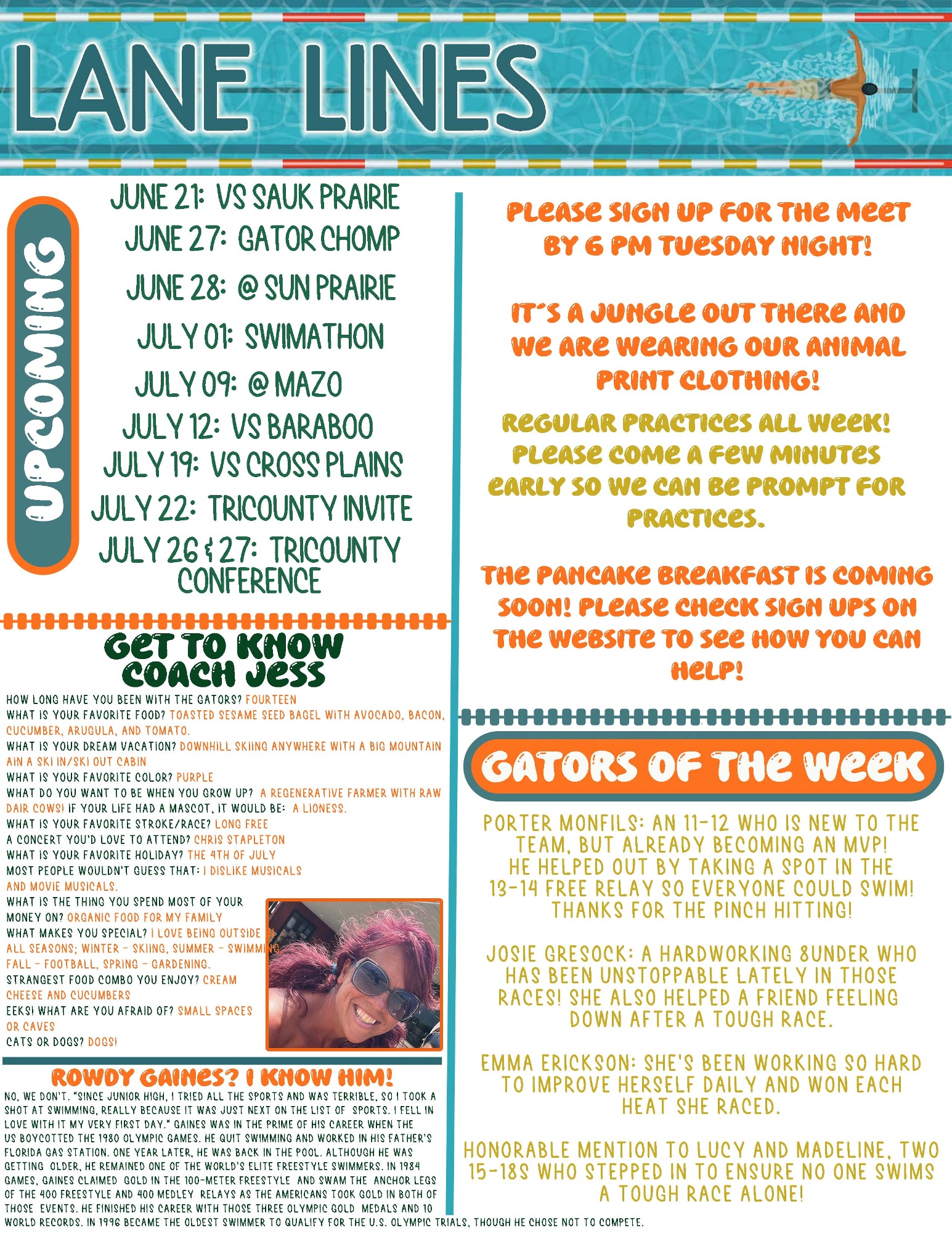 Thank you, as always, for trusting us with your children, for joining our team, and for being a part of our Gator Community! Adult swim starts tomorrow if you're interested! We're wearing animal print to our Saturday meet!